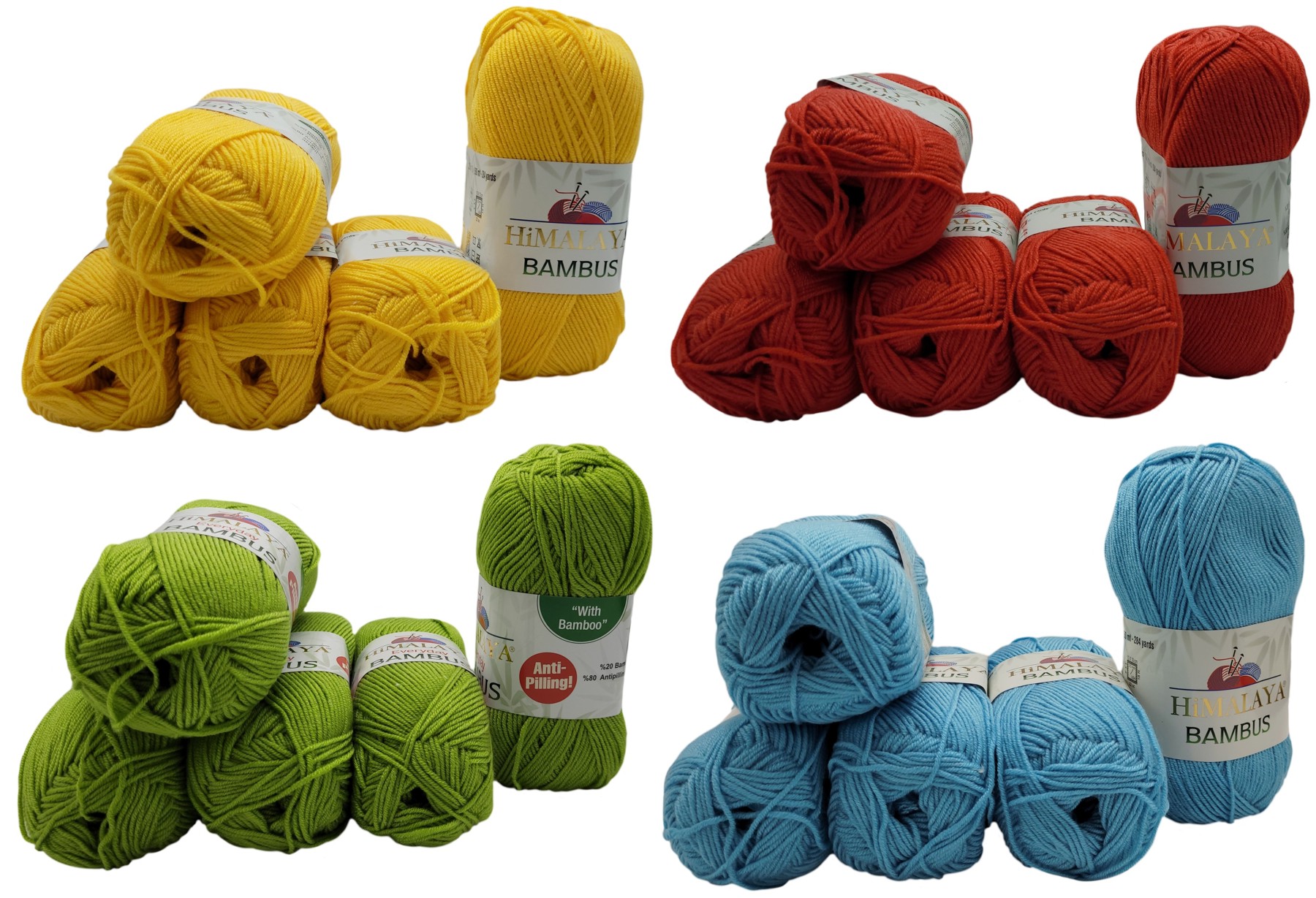 5 Knäuel Strickgarn Himalaya Bambus. Je Knäuel 100 Gramm, gesamt 500 Gramm. Je Knäuel 260m = 1300 Meter. Die Wolle besteht aus 20% Bambus und 80% Acryl. Angaben zum Stricken: Für die Nadelstärke 3,5 geeignet. Maschenprobe: 38 Maschen über 30 Reihen = 10 x 10cm. Angaben zum Häkeln: Für die Nadelstärke 3,5 geeignet. Maschenprobe: 22 Maschen über 18 Reihen = 10 x 10cmIn.